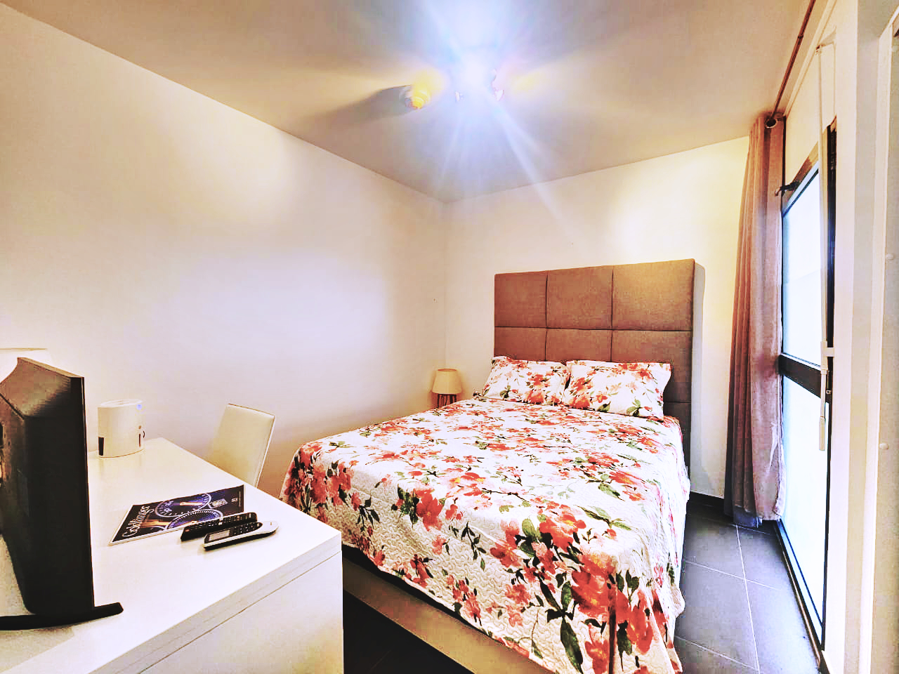 Step into a sleek, fully furnished studio designed for easy, modern living. The unit features a spacious private terrace—perfect for enjoying your morning coffee or unwinding in the evening. The kitchen is equipped with new appliances, and air conditioning ensures year-round comfort. A backup generator provides peace of mind, so your daily routine is never interrupted.