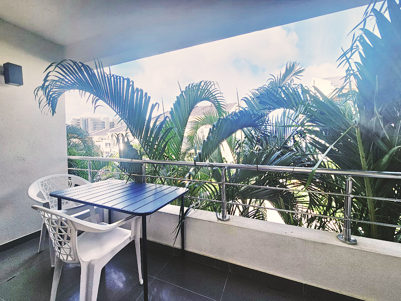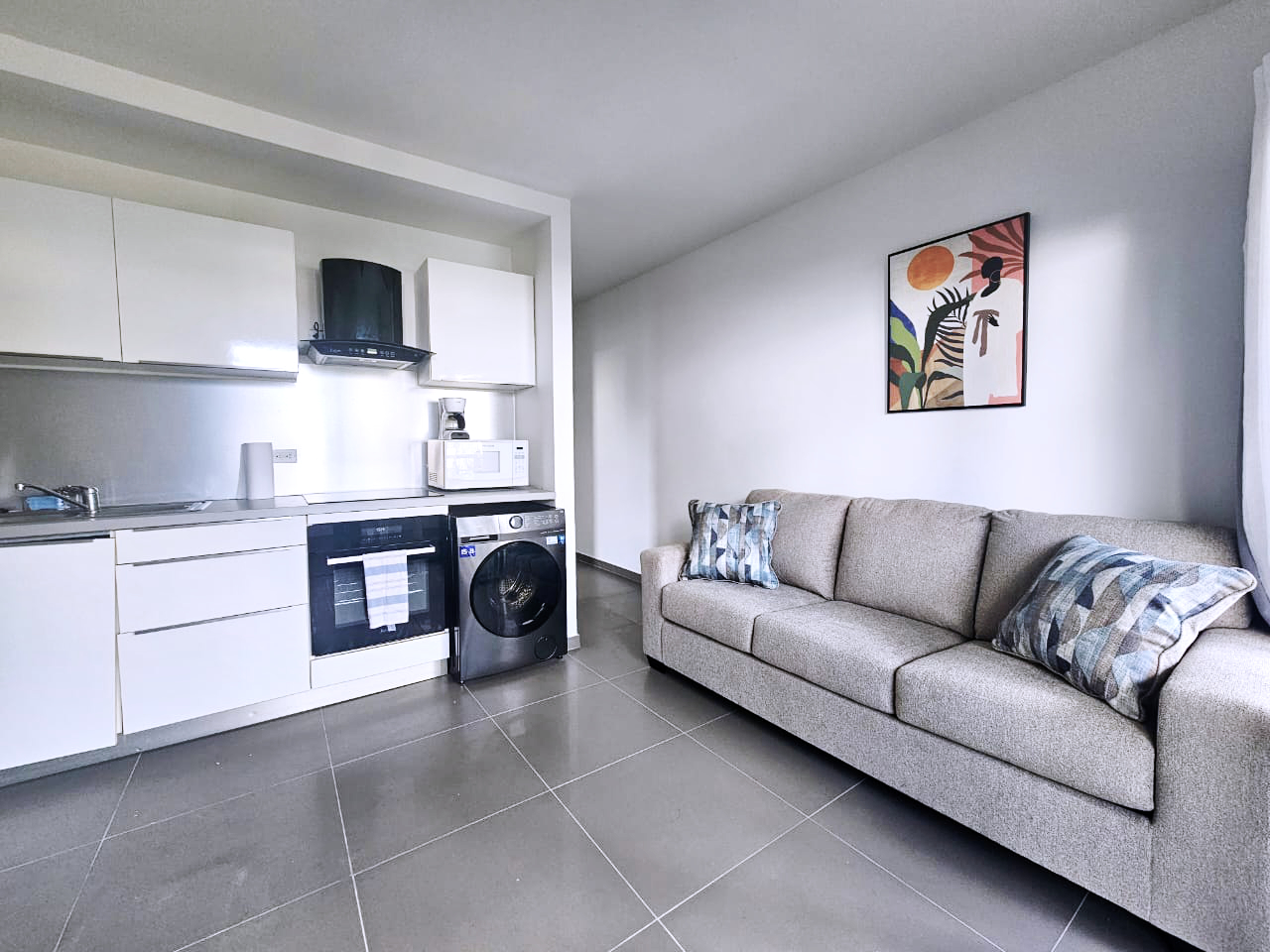 Step into a sleek, fully furnished studio designed for easy, modern living. The unit features a spacious private terrace—perfect for enjoying your morning coffee or unwinding in the evening. The kitchen is equipped with new appliances, and air conditioning ensures year-round comfort. A backup generator provides peace of mind, so your daily routine is never interrupted.