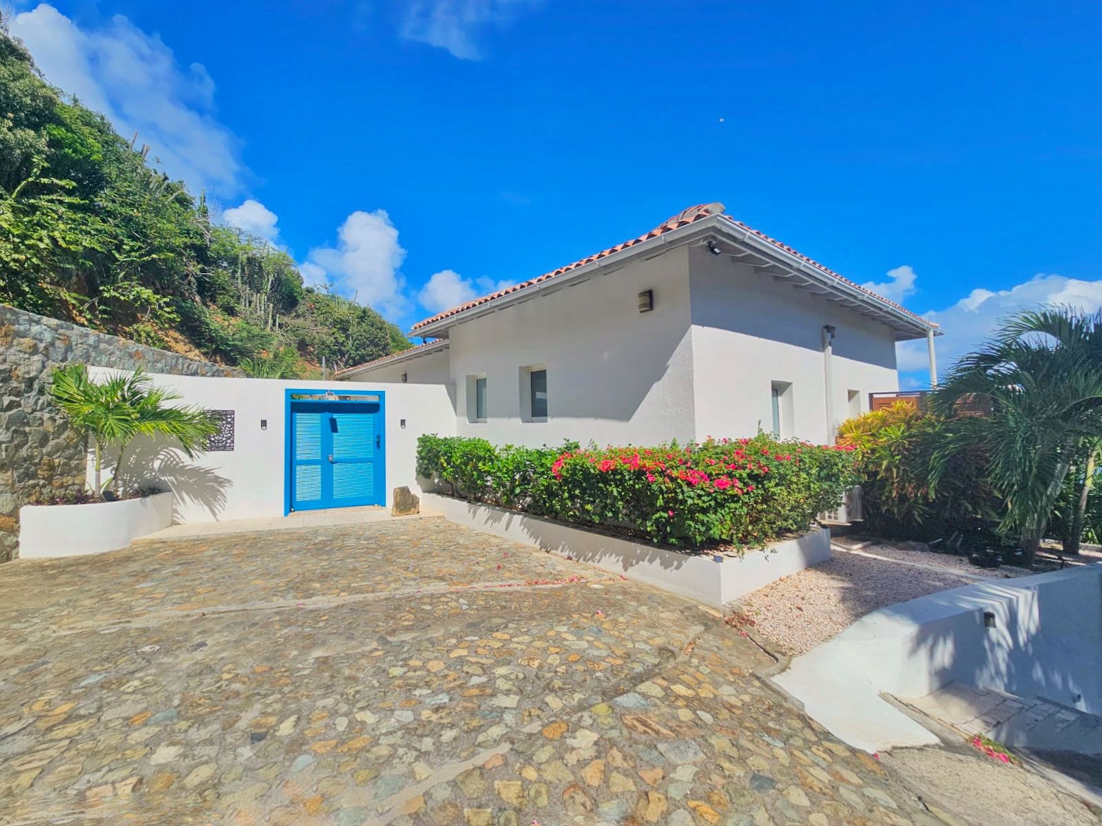- Lush tropical landscape surrounding the home