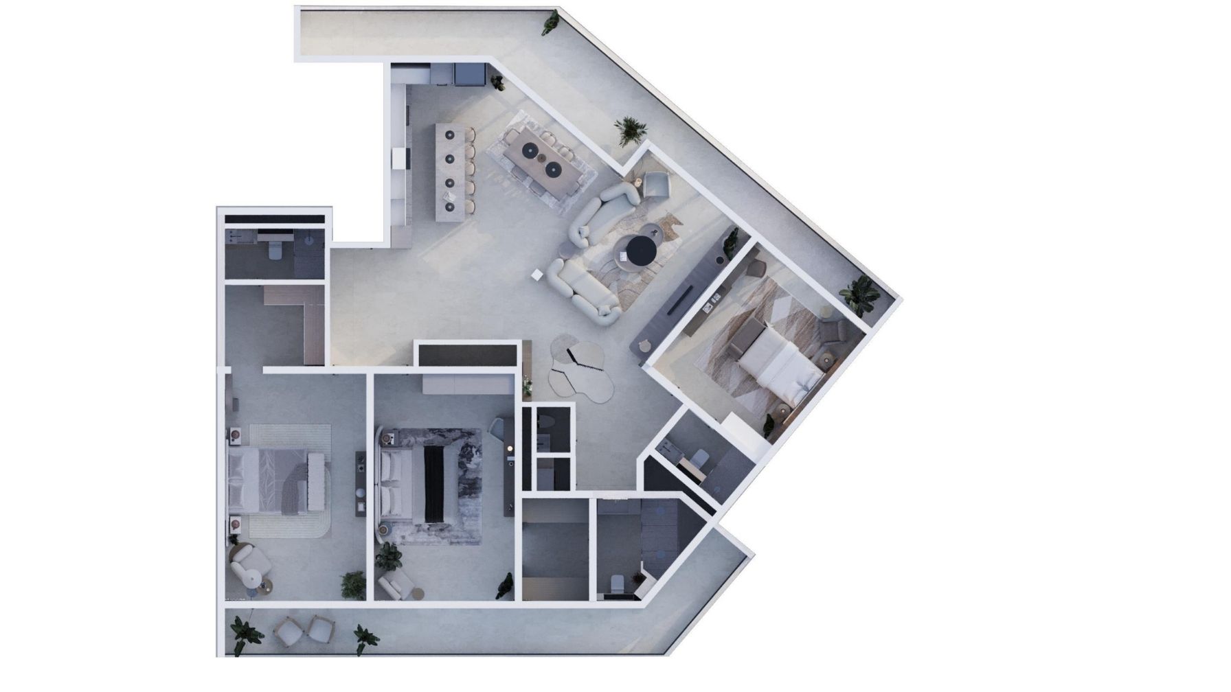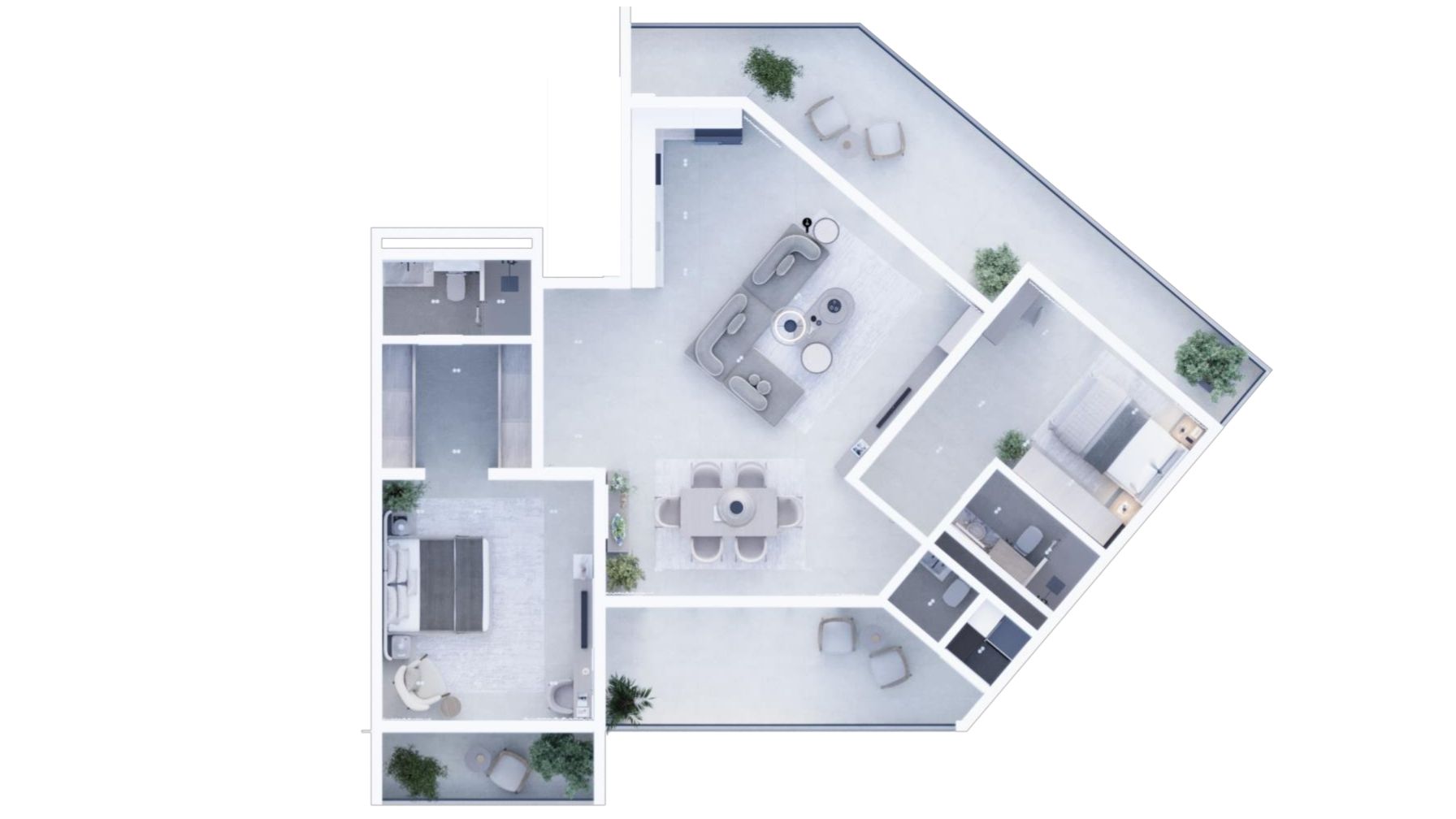 | Balcony | Panoramic corner, wrap-around |